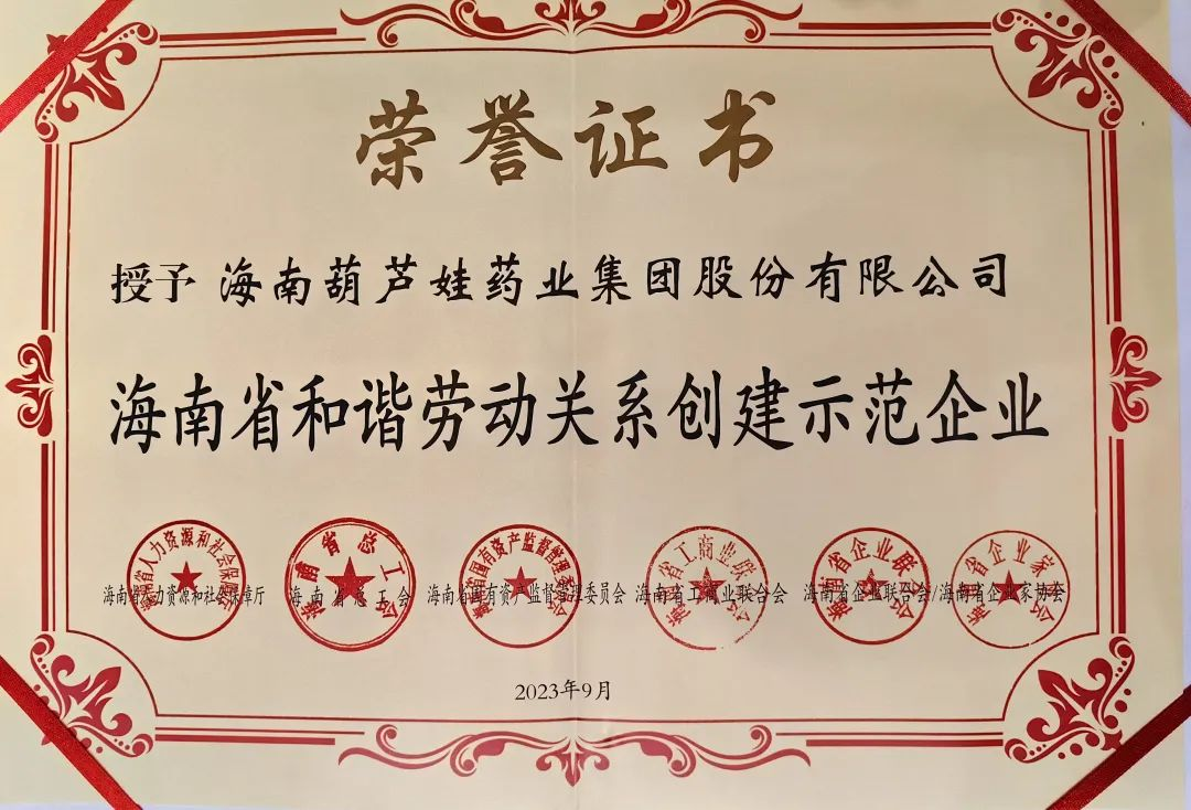 z6mg人生就是博药业集团获评“海南省和谐劳动关系创建示范企业”